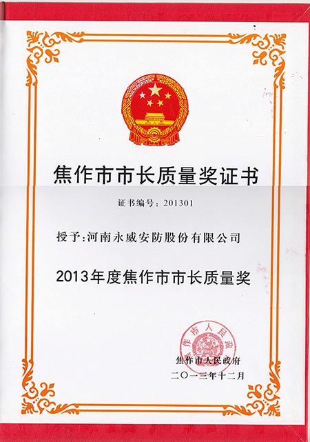 焦作市市長質(zhì)量獎-證書
