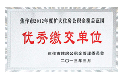 焦作市2012年度住房公積金優(yōu)秀繳交單位